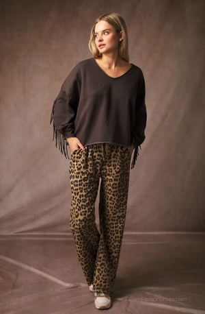 Introducing the ultimate in comfort and style, our Brown Oversized Sweatshirt with Fringe is crafted from soft cotton for a luxurious feel. Designed with fringe detailing, this sweatshirt adds a touch of boho-chic to your wardrobe. Expertly crafted for both comfort and fashion, it's the perfect addition to your casual wardrobe.