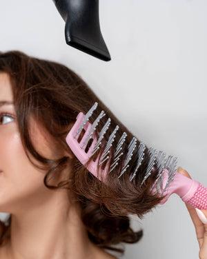 Achieve the perfect blow-dry with Brushworks Blow Dry Paddle Brush! Featuring an easy grip, soft touch handle and flexi soft bristles arranged in spaced out rows, this brush promises a faster blow dry! The spaced-out bristle design allows for pain-free detangling, whilst the soft bristles gently massage the scalp to stimulate circulation at the follicle. Great for all hair types and on wet or dry hair.