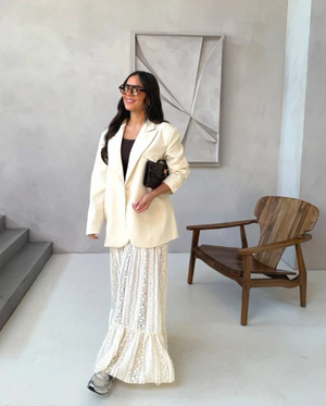 Available in white and in black. Great to pair with an oversized T-shirt and trainers or dress it up with a blazer and heels.