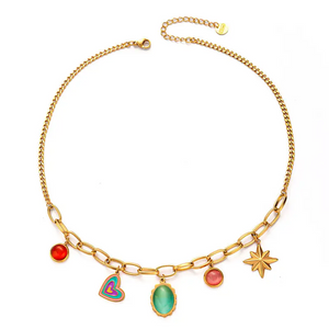 Multi Rainbow Charm Necklace in Gold Made from 18kt gold plated stainless steel & natural stone Hypo-allergenic (free from lead/nickel/cadmium)