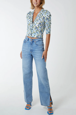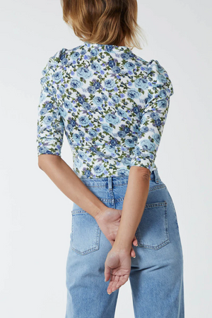 Floral cardi top in a shorter length. Blue and green. Perfect spring piece.